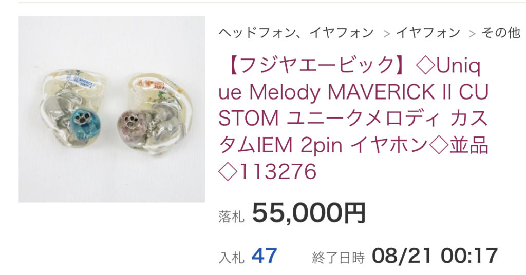 定期的にヤフオクをチェックしているとリシェル前提の中古品が出品されているのを見かけるのですが、例えばFitEarの人気モデル“MH334”は5万円以下で落札されています。