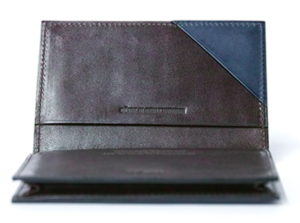 名刺入れにもなるサイズ感で、写真のような開いてすぐにとり出せる三角ポケット付の仕様もあります。