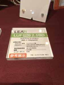 ハイブリッドモデルはLUF pro 2.1 BDで試作段階。装着感がめちゃくちゃ良く、音もハイブリットらしくて弱点らしい弱点がない。今回聴いた3機種の中では最も好み。