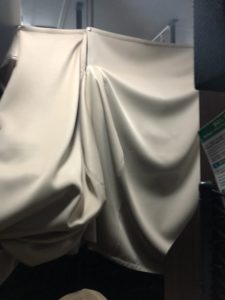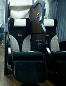 奥側に見えるのがアドバンスシート。通路側はカーテンで仕切られます。