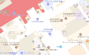 大阪駅に無事到着。降車場所はLUCUA付近、JR北口の真ん前でした。