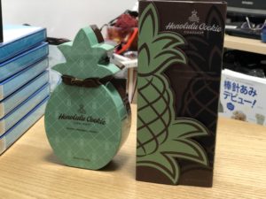 こちらもド定番、ホノルルクッキーです。外箱のみならずクッキー本体もパイナップルを模しているのが特徴。ワイキキエリアであればワンブロックに1店舗あるんじゃないかと思うくらい店舗数が多いです。お店で買うよりもまとめ買い割引のある免税店がオススメです。