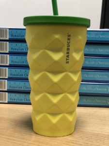 ハワイ限定のパイナップルカラーの金属タンブラーです。空港で一目惚れして購入しました。自分への土産になりますし、日本で買えない物品を探し回ってもいいですね。お値段は$26と相場通りです。