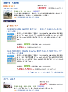 つまり全体の日時検索ではそのプランは引っかかってこないわけです。 このようなプランは大概「ROCK IN JAPAN向け宿泊プラン」というタイトルが設定されているケースがほとんどなので、日時検索ではなくワード検索「ROCK IN JAPAN」で弾いてみると、、、