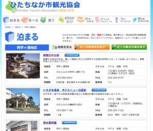 エリアごとに宿泊施設をまとめてくれています。例えば阿字ヶ浦地区ならば