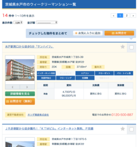 URLは→https://www.weekly-mansion.com/ibaraki/search/list_add.html?jyuusyo_cd=08201