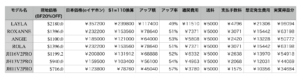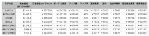 LAYRAで8~10万、ROXANNEやLORAで5~7万、ANGIEやJH-PROシリーズで3~6万くらいの価格差となります。