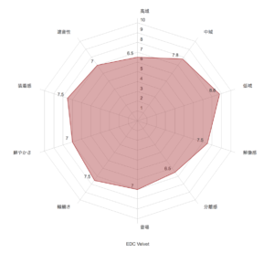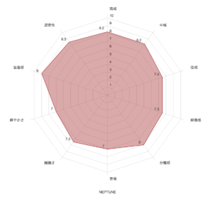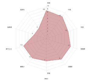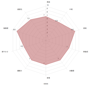 • 最低1最大10ですが、よほどのことがない限り10という点数は付けません。上には上がいるので、10を付けてしまったらそれより良いものが出てきたらどうするのか悩ましいからです。実質9.5が最高レベル。