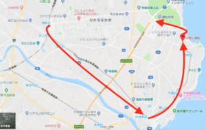 勝田駅のタクシーが超行列で捕まえられないならば、もっと空いていそうな駅で待機タクシーなり流しタクシーを押さえればいいじゃないってことで、今回私が取ったプランがこちら。