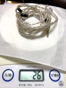 まずはCrystal Cable Nextから。端子は3.5mm、込み込みで26g。
