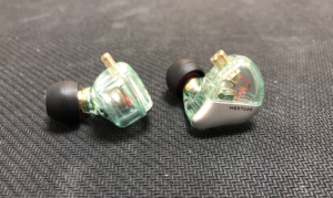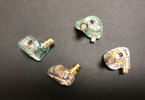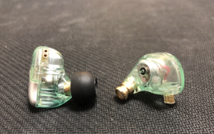 カラーはグリーンにしました。ベースはクリアーとなっており、搭載されたダイナミックドライバーが確認できます。この価格帯でビルドクオリティをどこまで求めるか難しいところですが、シェルの透明度はまずまずで、中空ではあるもののドライバーはしっかり固定されてそうな感じ。