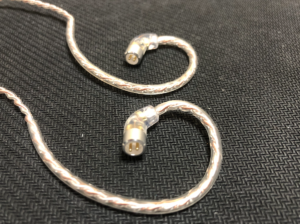 付属ケーブルは毎度のことながら耳掛け部のチューブの形状記憶が強烈。付属ケーブルは一般的なカスタム2pinではなく、いつぞやのUEやqdcのような強度が確保されているタイプの2pinなので、ピンが折れたり孔が緩々になったり、というような事故が抑えられる工夫が施されています。